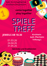 Dann sei dabei beim nächsten Spiele-Treff am Freitag, den 24. April, ab 18:30 Uhr im Pfarrheim Kirchheim!