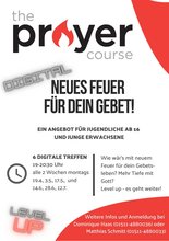 Warum beten? Wie im Gebet wachsen? Was ist der Unterschied zwischen Lob, Dank, Fürbitte, Bitte, Klage? Wie gehe ich mit schweren Zeiten und Entmutigung um? Um diese Themen dreht sich der Kurs über 6 Treffen (zweiwöchentlich mit längerer Pfingstpause).