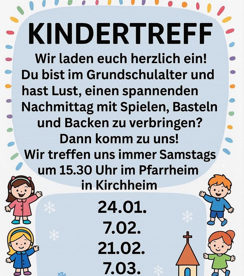 Wir treffen uns immer Samstags um 15. 30 Uhr im Pfarrheim in Kirchheim.